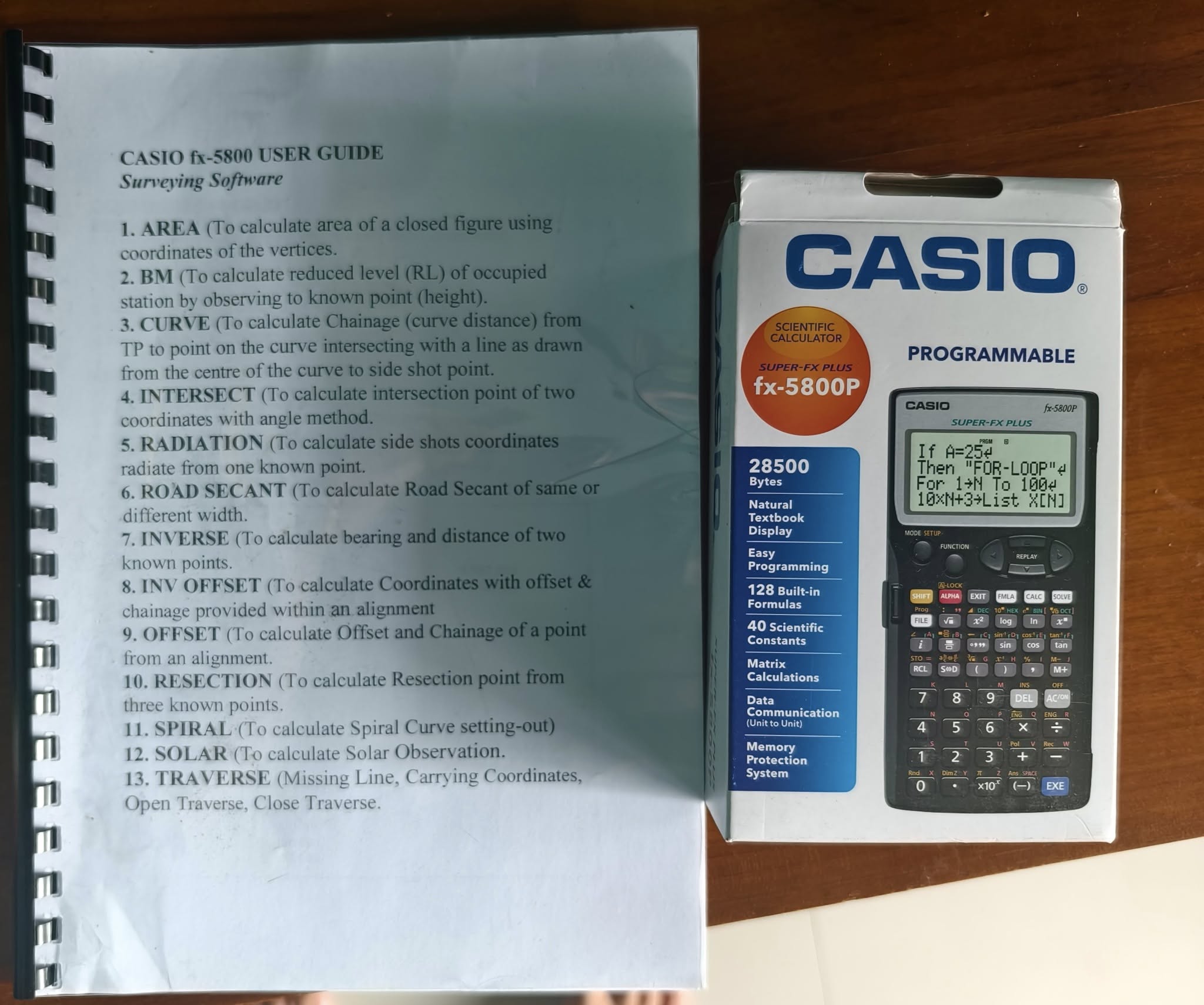 Untuk pembelian kalkulator fx-5800p,kami sudah mengisi program untuk surveyor.
